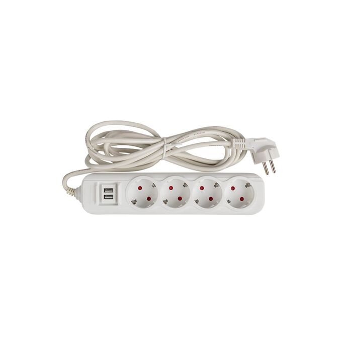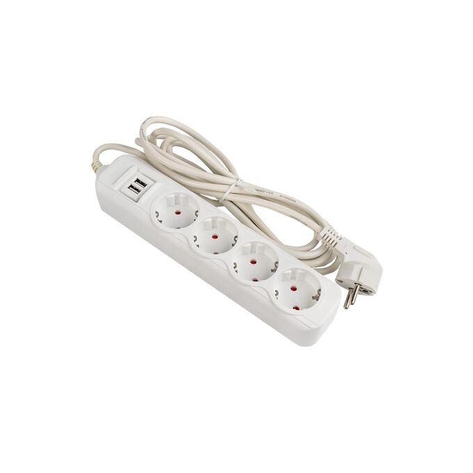 Удлинитель EKF Эксперт UBA16-2USB-4-03i 4 гнезда 3 метра 16А/3,5кВт с 2 USB 2,1А ПВС 3х1