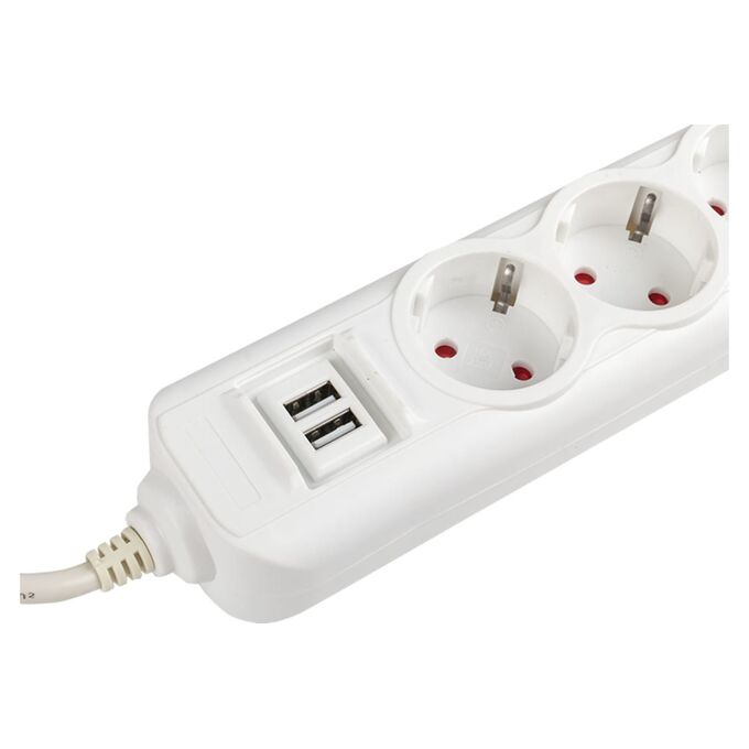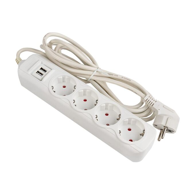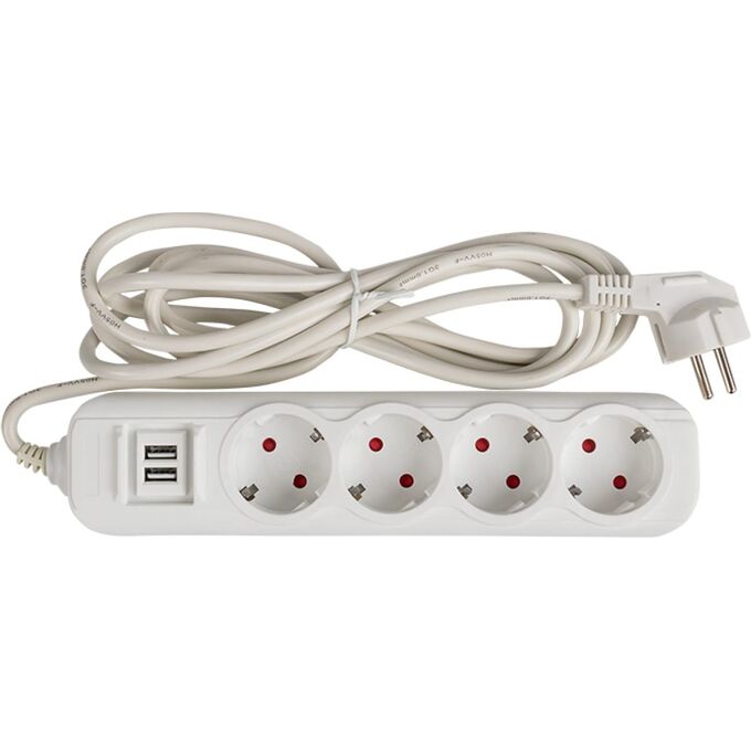 Удлинитель EKF Эксперт UBA16-2USB-4-05i 4 гнезда 5 метров 16А/3,5кВт с 2 USB 2,1А ПВС 3х1