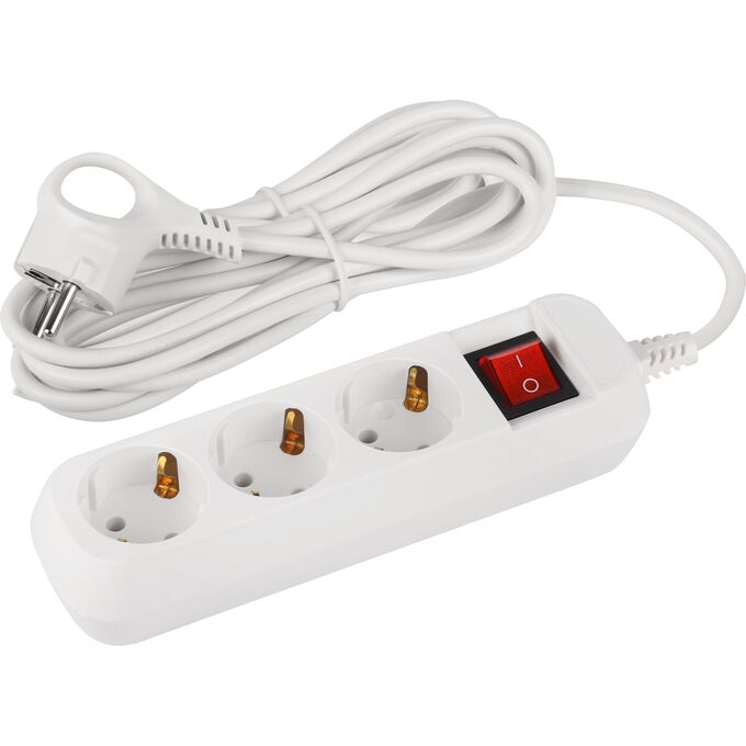 Удлинитель ЭРА UDL-10-350-ES Greenline, 3 розетки, с заземлением, с выключателем, 10А, 5м, белый