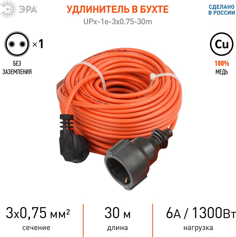 Удлинитель ЭРА UPx-1e-3x0.75-30m-IP44 (Б0046812) 1 розетка 30м 6А