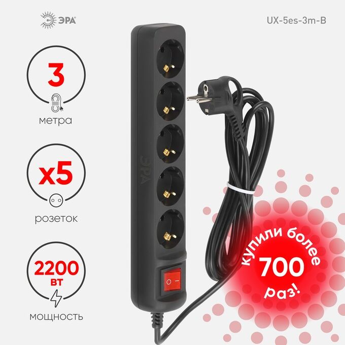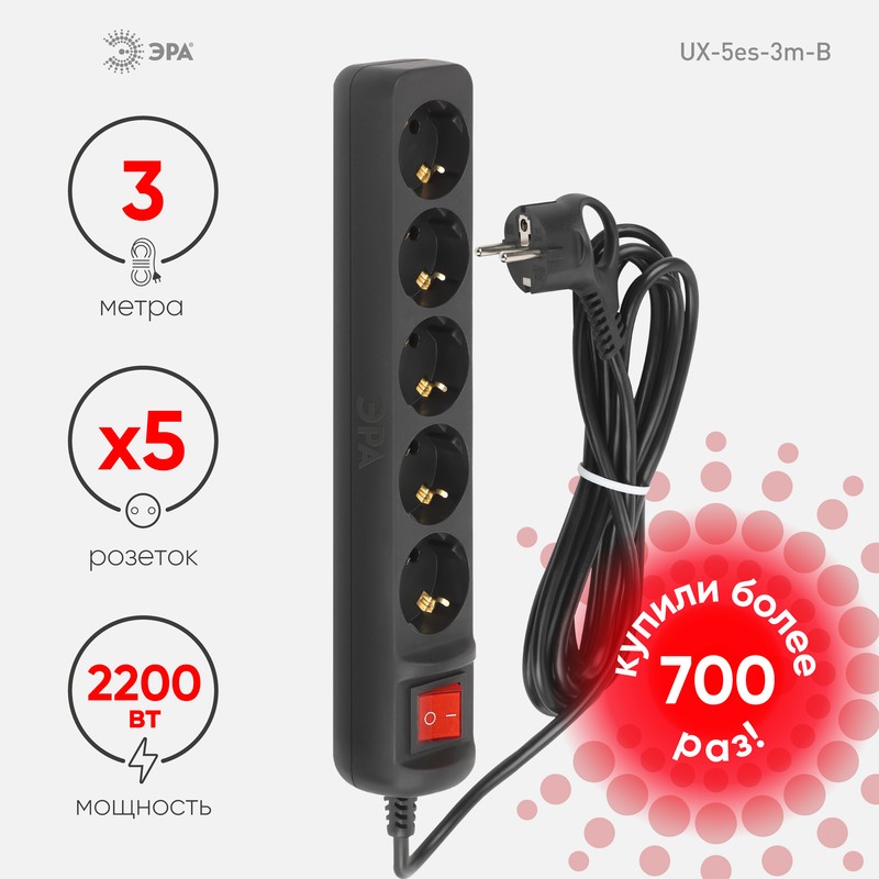 Удлинитель ЭРА UX-5es-3m-B Б0057731 5 розеток 3м черный