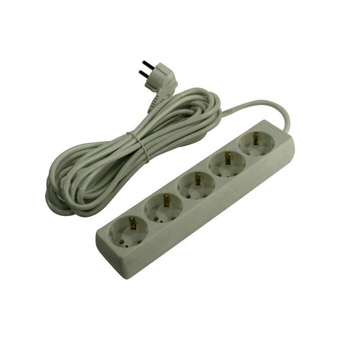 сетевой удлинитель, 5 евророзеток, максимальная мощность нагрузки 2.2 кВт, 3 м, серый