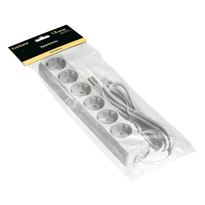 Удлинитель ExeGate ECE-6-1.8W EX285830RUS белый 6 евророзетки с заземлением, 1.8м