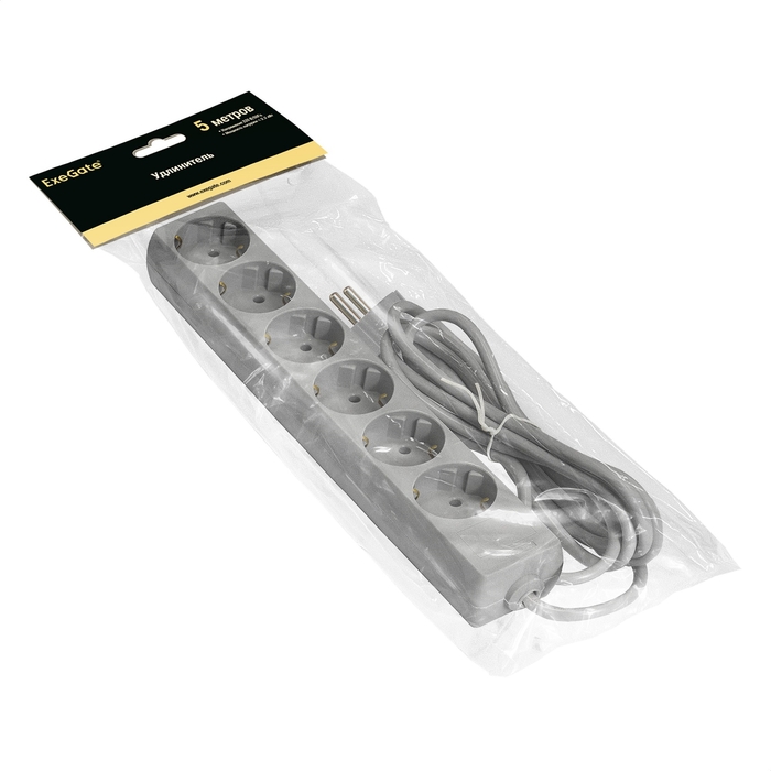 Удлинитель ExeGate ECE-6-5G EX285835RUS серый 6 евророзетки с заземлением, 5м