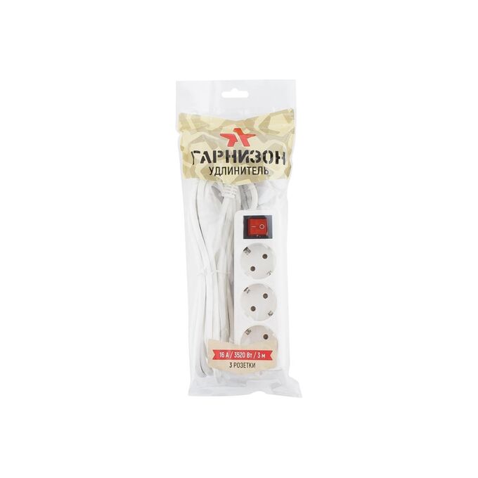 Удлинитель Гарнизон ELB-G3-W-3, 3розетки 16А 3м с выключателем и заземлением
