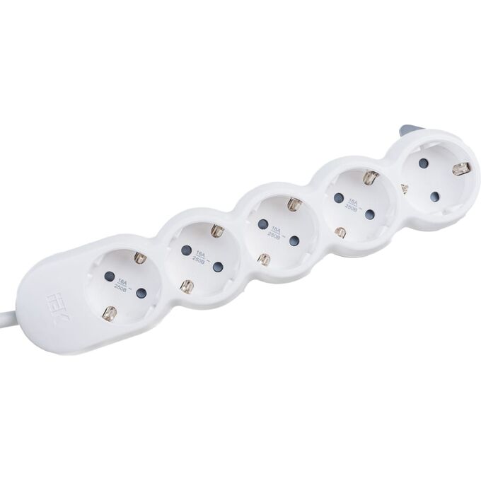 Удлинитель IEK UNO У05В (WYP53-16-05-03-ZK) с выключателем 5 мест 2P+PE/3м 3х1,5мм2 16А/250В