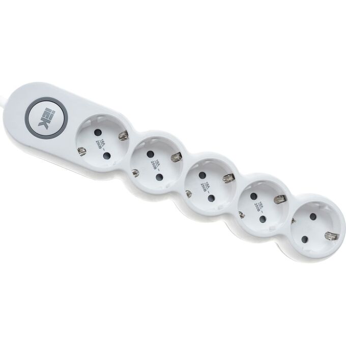 Удлинитель IEK UNO У05В (WYP53-16-05-D15-ZK) с выключателем 5 мест 2P+PE/1,5м 3х1,5мм2 16А/250В