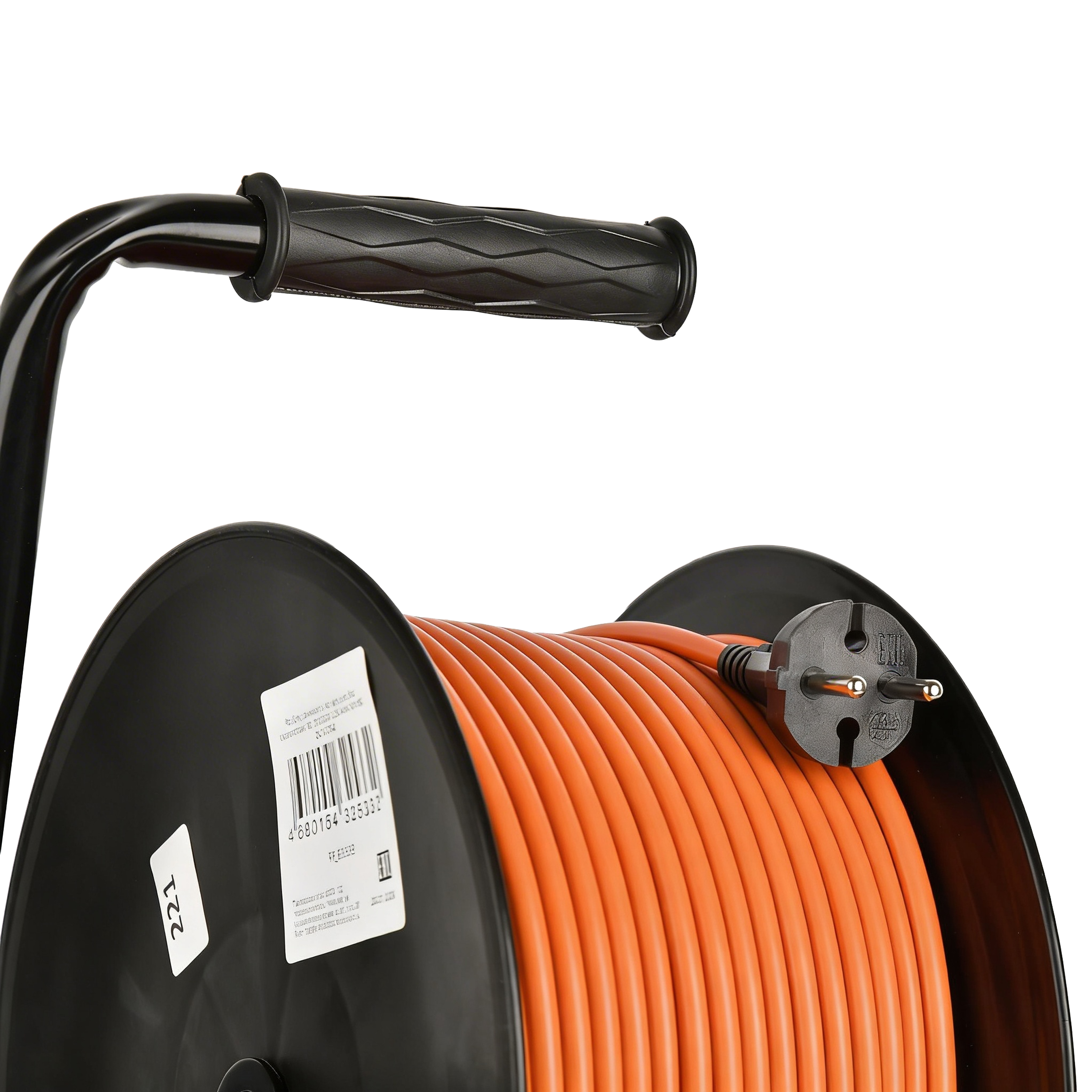 • Удобная катушка с эргономичной рукояткой и ручкой для лёгкой транспортировки и быстрой смотки/размотки кабеля.