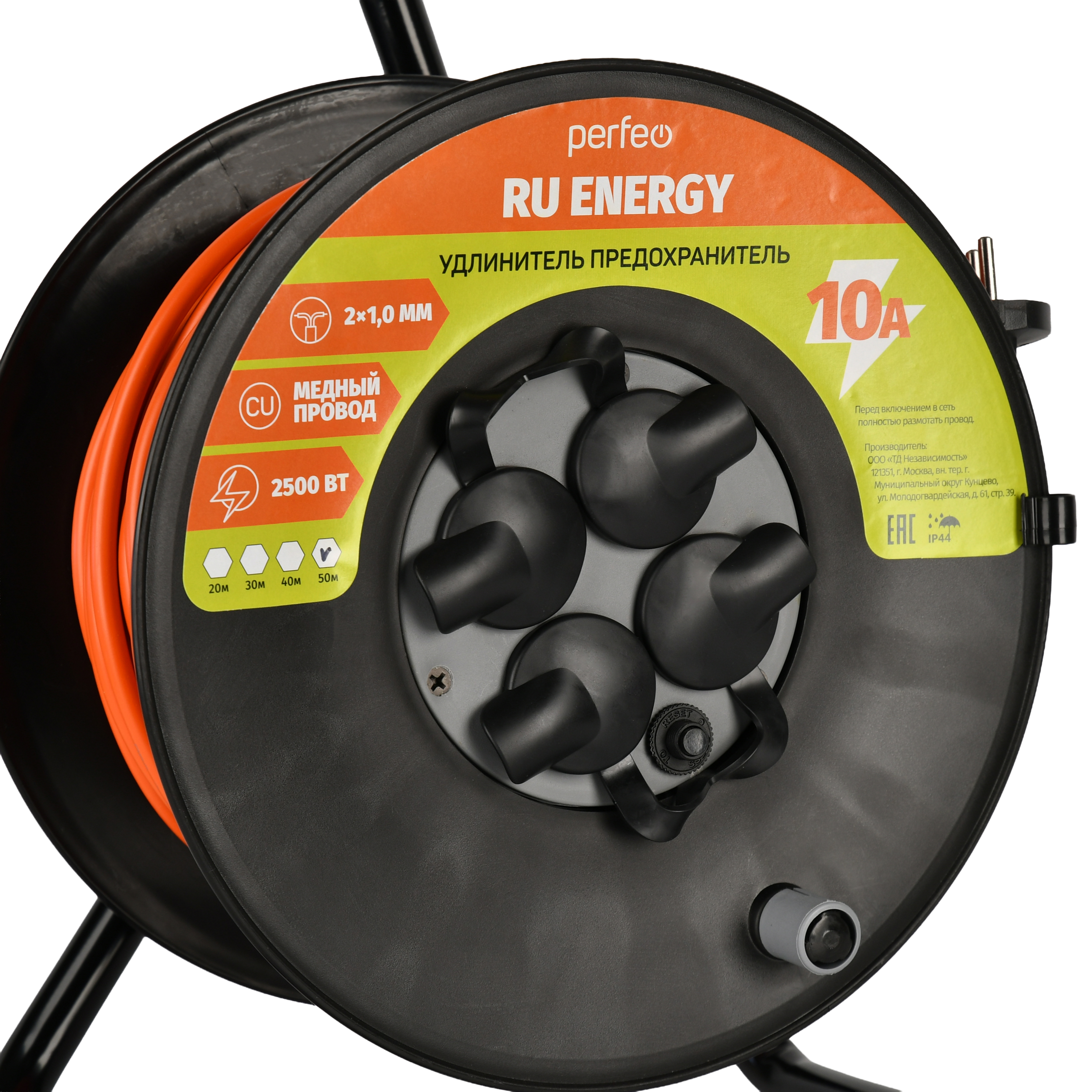 Удлинитель на катушке без заземления Perfeo "RU ENERGY" 40м 4гн с т/з 10А ПВС 2х1 IP44, (Арт. PF_E2528)