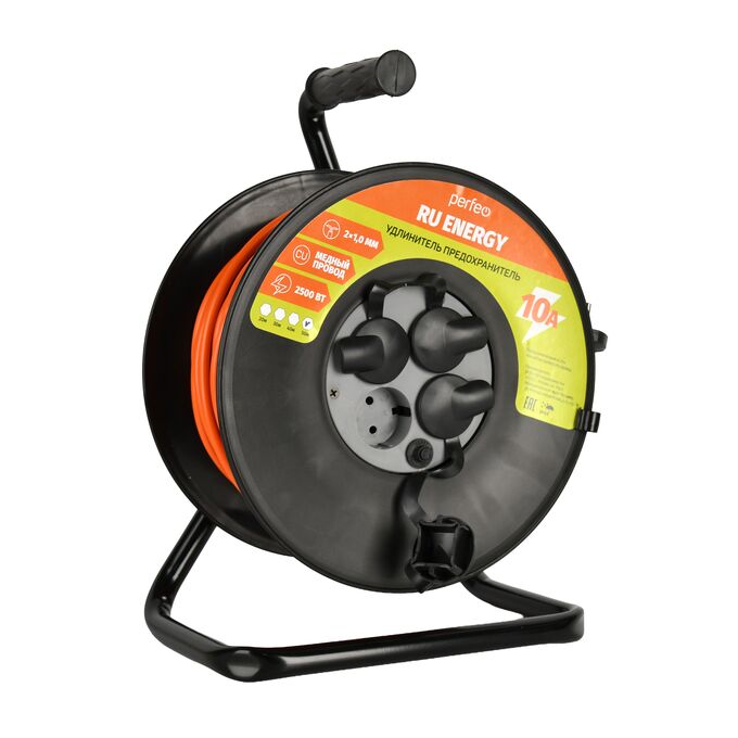 Удлинитель на катушке без заземления Perfeo "RU ENERGY" 50м 4гн с т/з 10А ПВС 2х1 IP44, (Арт. PF_E2529)