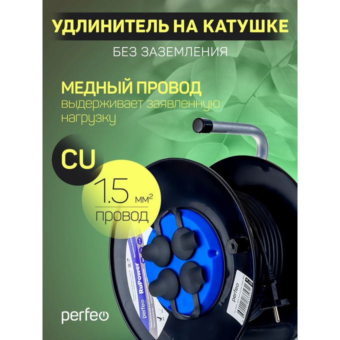 Удлинитель на катушке Perfeo без заземления "RU POWER" 20м 4гн 16А ПВС 2х1,5 IP44 (РБК16), (Арт. PF_C3353)