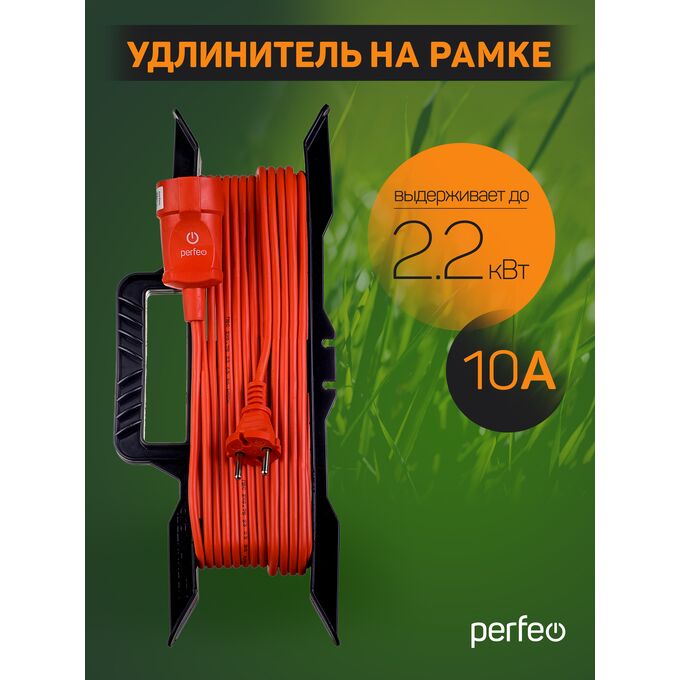 Удлинитель на рамке без заземления Perfeo "RU POWER" 20м 1гн 10А ПВС 2х1,0 (УХ10-101) оранжевый.