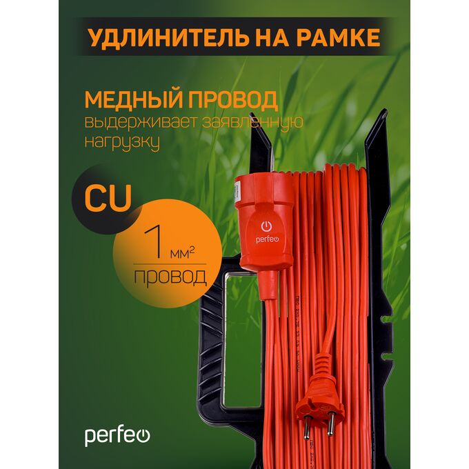 Удлинитель на рамке Perfeo «RuPower» - спасение в ситуациях, когда стандартной длины шнура питания становится недостаточно. н идеально подойдет для подключения ремонтного, строительного и другого оборудования. Гибкий оранжевый провод – хорошо видно на земле и траве. Медный провод обладает большим запасом надежности и меньшей потерей мощности при нагреве.
