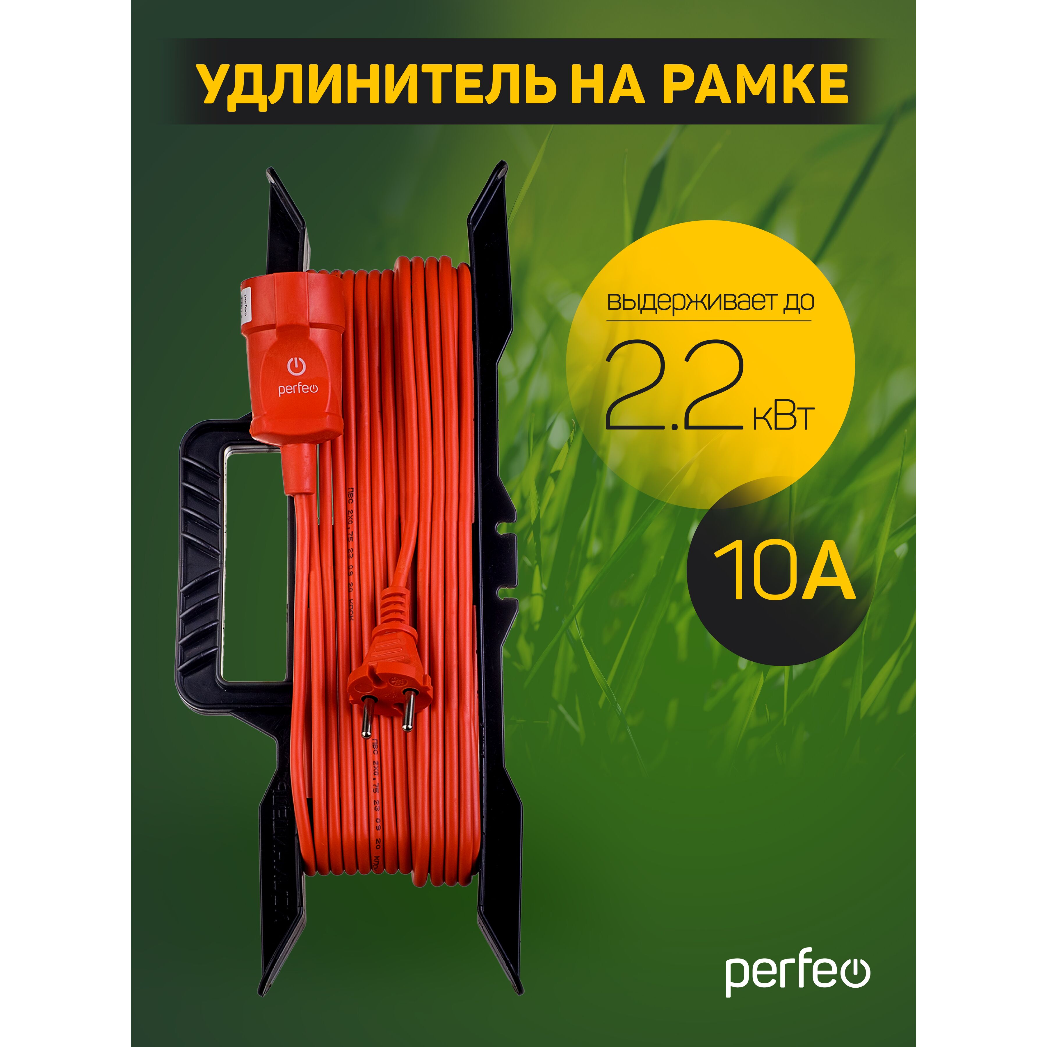 Удлинитель на рамке без заземления Perfeo "RU POWER" 30м 1гн 10А ПВС 2х1,0 (УХ10-101) оранжевый.
