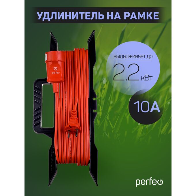 Удлинитель на рамке без заземления Perfeo "RU POWER" 50м 1гн 10А ПВС 2х1,0 (УХ10-101) оранжевый.