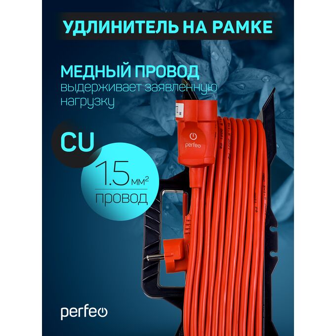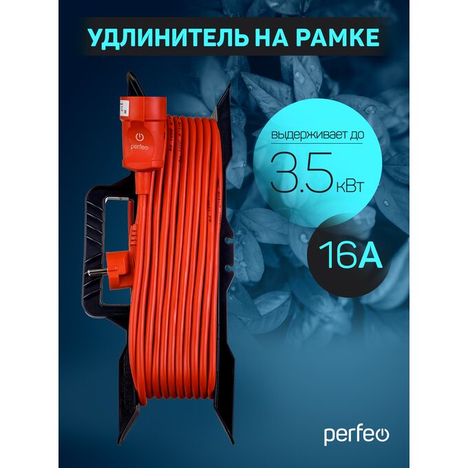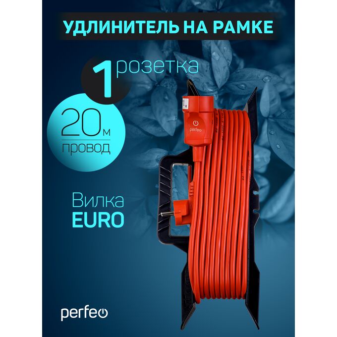 Удлинитель на рамке с заземлением Perfeo " "RU POWER" 20м 1гн 16А ПВС 3х1,5 ( УХз16-101) оранжевый.