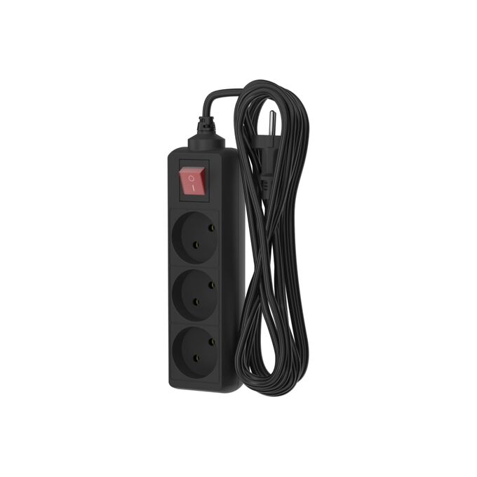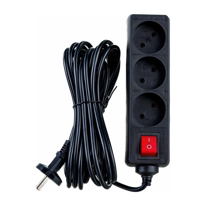 Удлинитель сетевой ФОТОН 24750 10-53S, 5м, 3 розетки, 10А, с выключателем, черный
