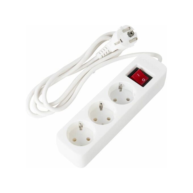Удлинитель сетевой SONNEN PSW-183 (513659) 3 розетки c заземлением, выключатель 10А, 1,8м белый