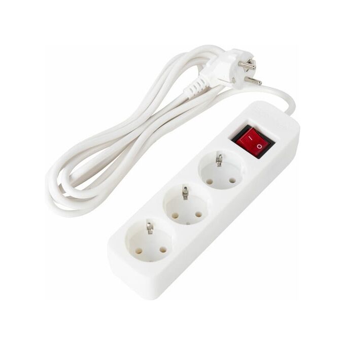Удлинитель сетевой SONNEN PSW-303 (513660) 3 розетки c заземлением, выключатель 10А, 3м белый