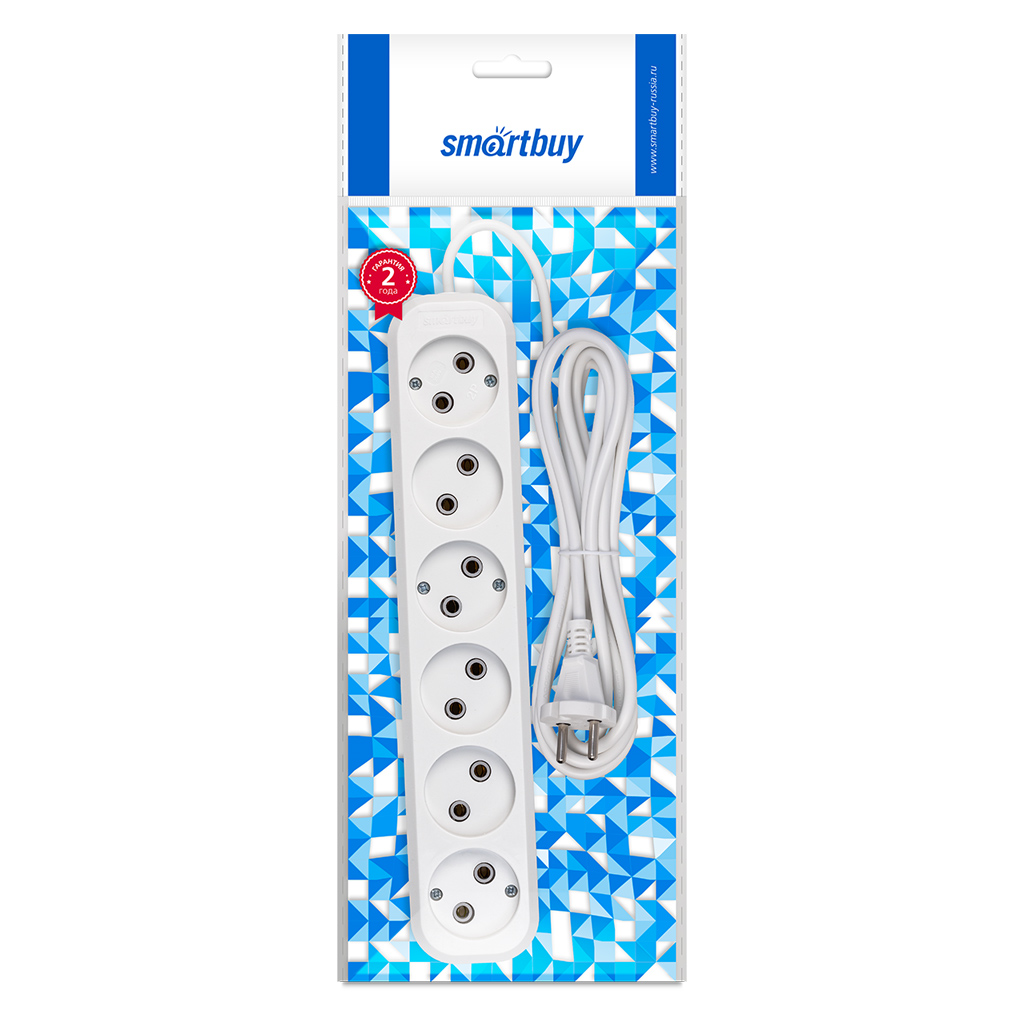 Удлинитель Smartbuy SBE-10-6-03-N 6 гнезд 3 метра 10А/2,2кВт без заземления ПВС 2х1,0