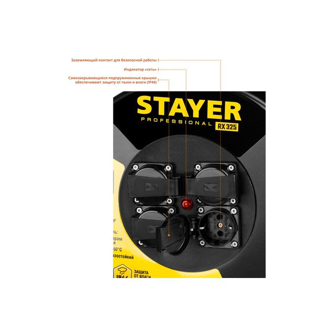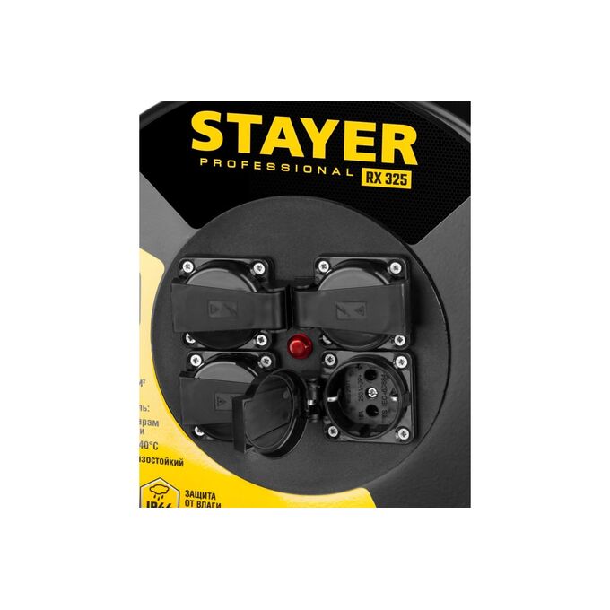 Удлинитель STAYER (55076-50) 3x2.5кв.мм 4розет. 50м КГ черный