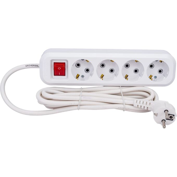 Удлинитель UNIVersal 1734 S-304а ПВС 3/1,5 4гнезда с заземлением, с выключателем, 3м, еврослот
