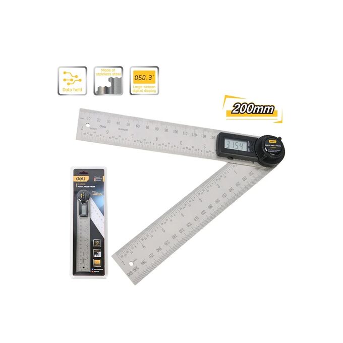 Угломер электронный Deli DL305200 200/400мм, диапазон 0-360 град., нержавеющая сталь