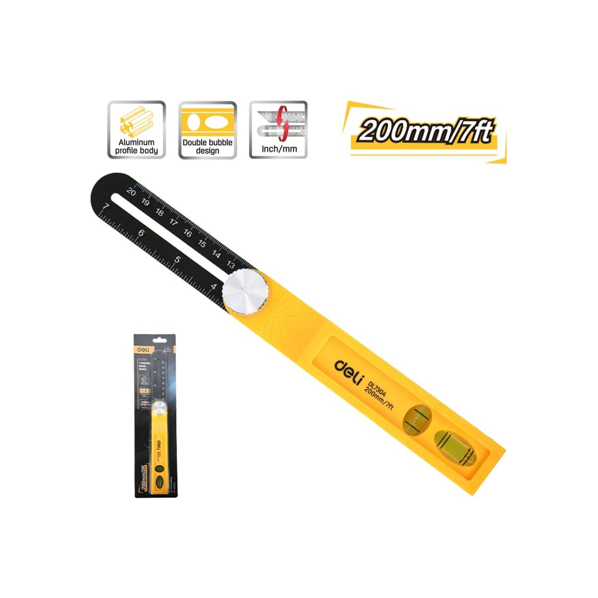 Угломер переставной-малка Deli DL7304 с пузырьковым уровнем 200мм