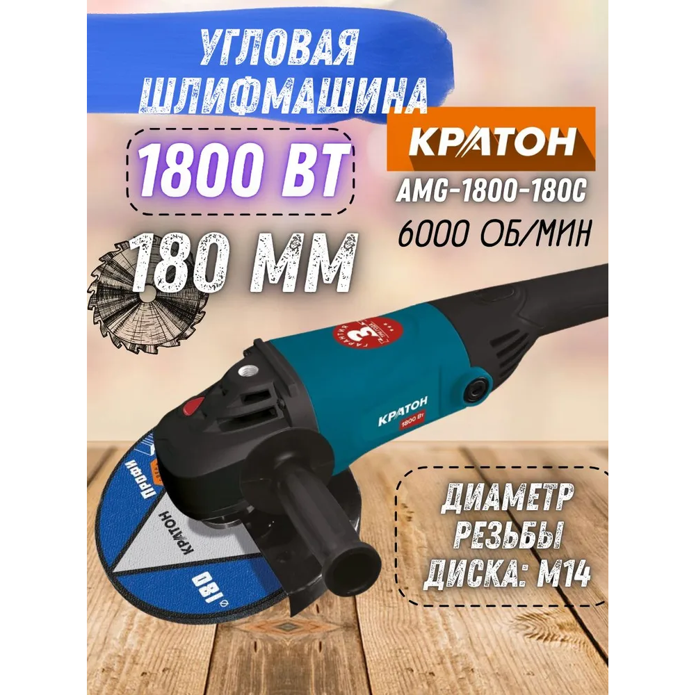 Углошлифовальная машина Кратон AMG-1800-180C 1800Вт 6000об/мин рез.шпин. M14 d=180мм (30501046)