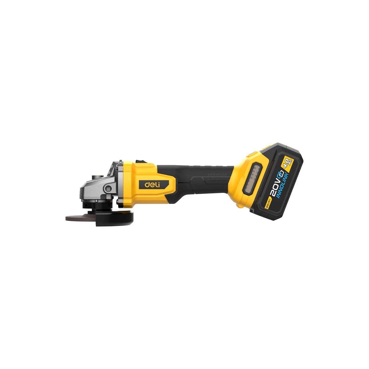 Угловая шлифмашина аккумуляторная Deli DC601 с АКБ и ЗУ, 20В, 115мм, М14, 3500/6000/8500об/мин, сумка