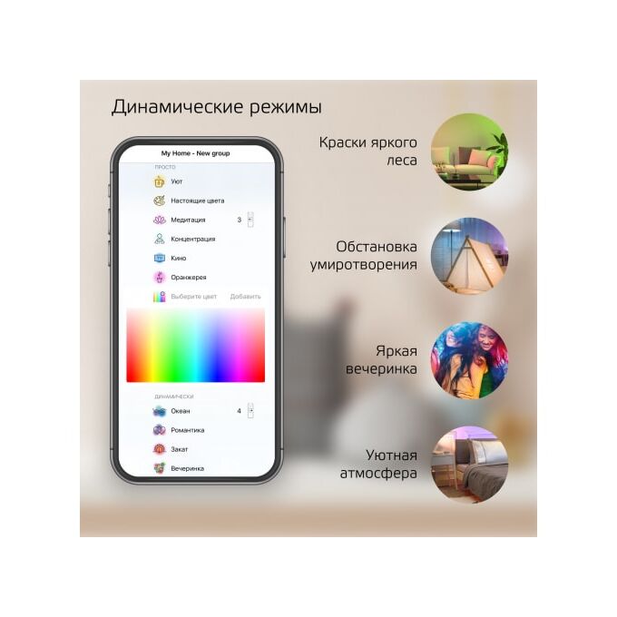 Дистанционное управление: управляйте светом через мобильное приложение или голосовой помощник (Алиса, Siri, Google, Маруся).