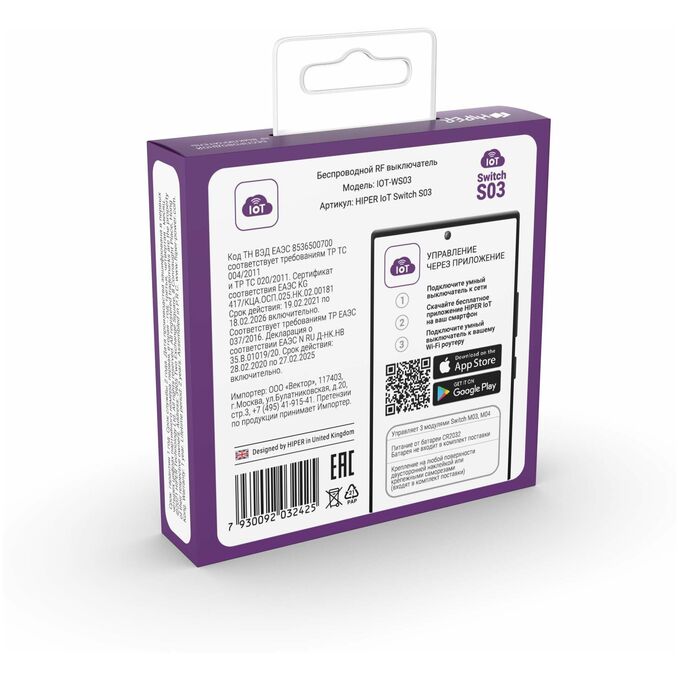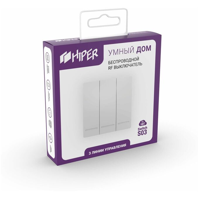 HIPER IoT Switch S03 – это беспроводной RF выключатель, предназначенный для управления 3 умными Wi-Fi модулями Switch M03, Switch M04.