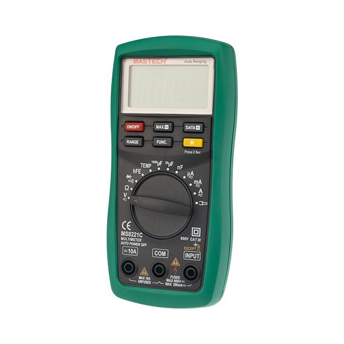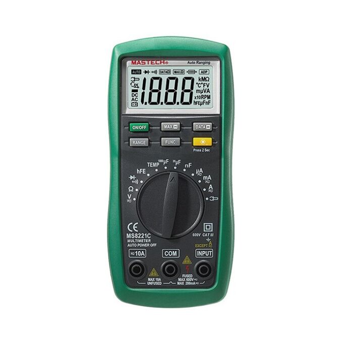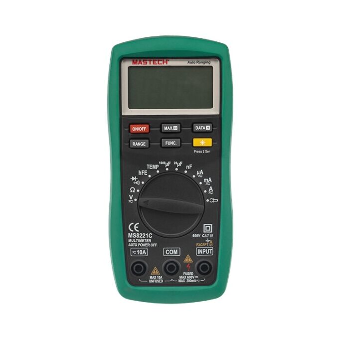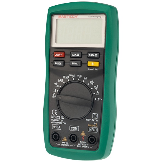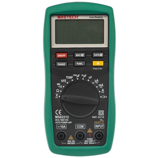 Дополнительные функции:автоматическое отключение питания, фиксация показаний дисплея (HOLD), индикация разряда батареи, тест диодов, прозвонка целостности цепи