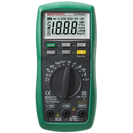 Тип измерений:постоянное напряжение, переменное напряжение, сопротивление, постоянный ток, переменный ток, емкость, температура