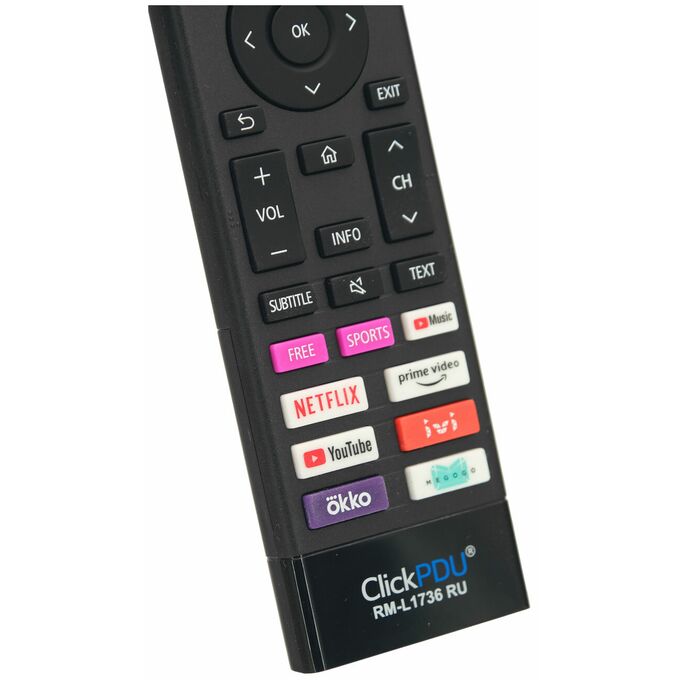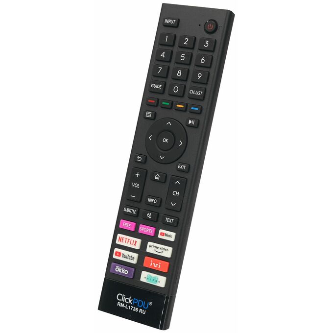 Универсальный пульт ClickPdu RM-L1736 RU (для TV HISENSE, DEXP, DNS) – это универсальный пульт, который заменяет множество пультов определенного бренда. В основном эти пульты не требуют настройки, просто вставили батарейки и пользуетесь, но иногда, когда настройка все-таки необходима, она сводится к нажатию всего двух клавиш. Из чего можно сделать вывод, что им могут пользоваться даже люди далекие от электроники. Его корпус очень часто совпадает с корпусом вашего родного пульта, поэтому у вас не будет привыкания к расположению на нем кнопок. Все они находятся на привычных местах.