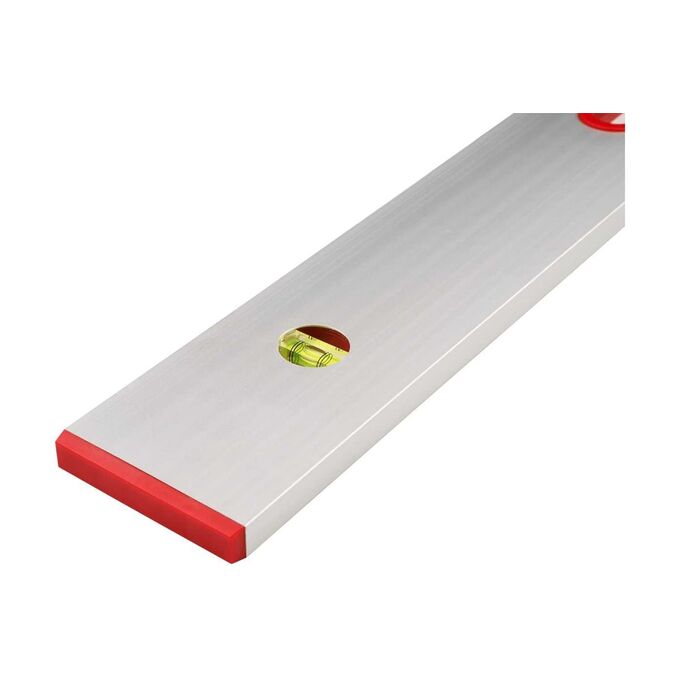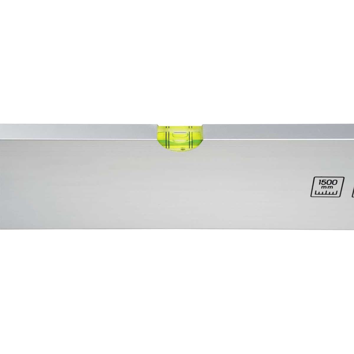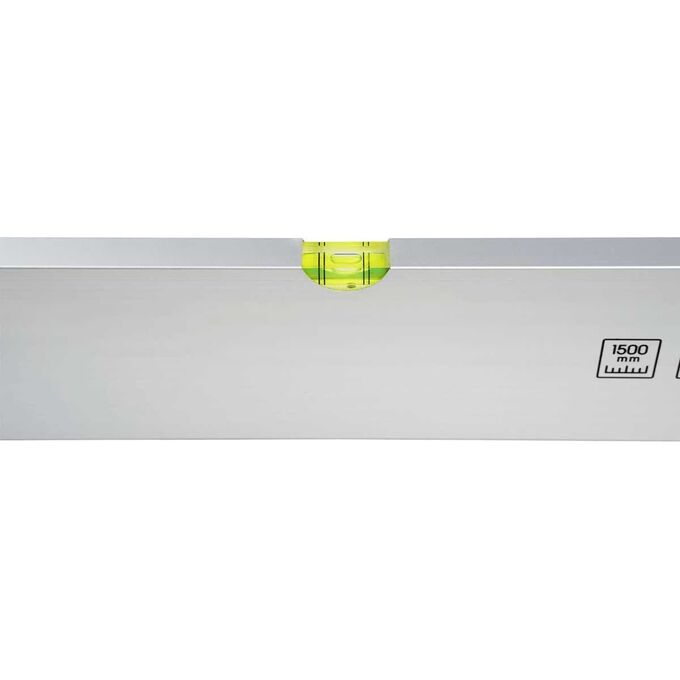 Уровень изготовлен из легкого, но прочного алюминиевого сплава, и оснащен двумя колбами (точность 1 мм/м), который расположены перпендикулярно друг другу. Рабочая длина составляет 1500 мм, благодаря чему правилом удобно пользоваться в коридорах, проходах и других достаточно узких пространствах. Кроме того, оптимальная длина также упрощает переноску оп объекту и транспортировку к месту проведения работ.