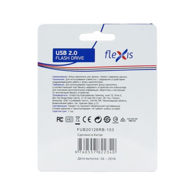 Флэш-драйв FLEXIS RB-103, 128GB, USB2.0, черный