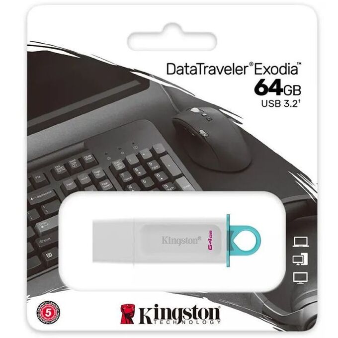 USB-флешка Kingston 64Gb DataTraveler Exodia KC-U2G64-5R USB3.1 белый/бирюзовый