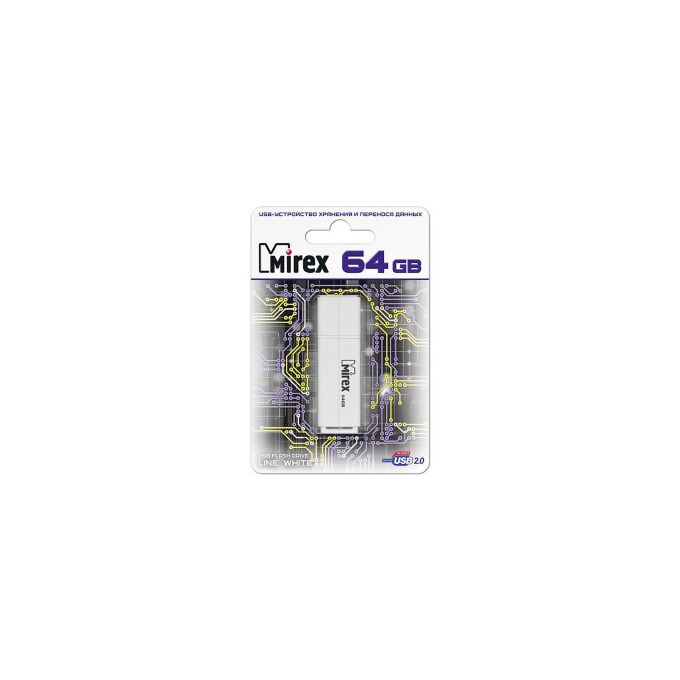 USB-флешка Mirex 13600-FMULWH64 64GB Line, USB 2.0, Белый