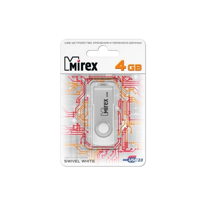 Flash Drive 4GB USB 2.0 Mirex Swivel, Белый (13600-FMUSWT04)