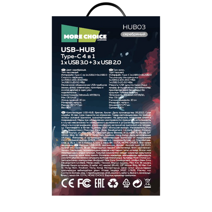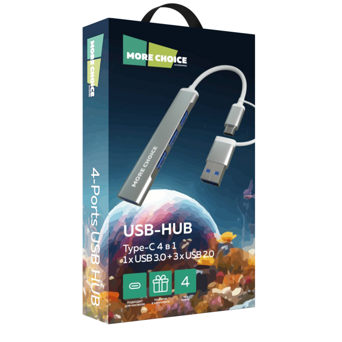 USB HUB 1USB 3.0+3USB 2.0 Type-C More choice HUB03 0,1м (Silver)