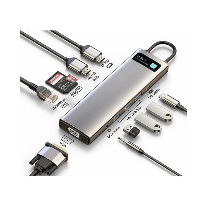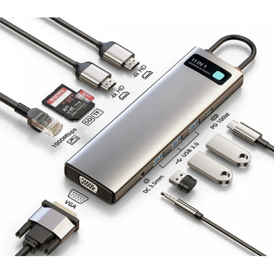 USB Hub Baseus Metal Gleam (CAHUB-CT0G) 11-in-1 Multifunctional Type-C HUB Docking Station Space Gray