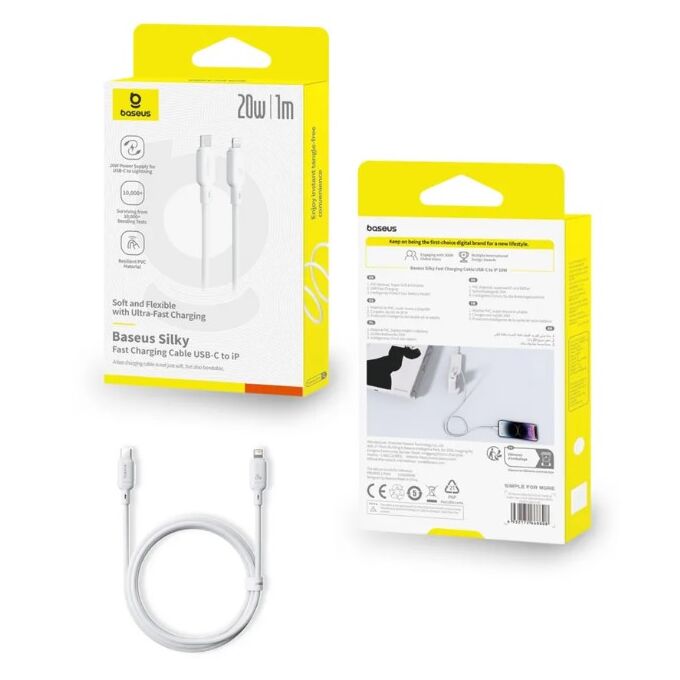 USB-кабель Baseus P10377700213-00, Type-C /Apple-8 pin, 20W, силикон, 1.0 м, круглый, белый |