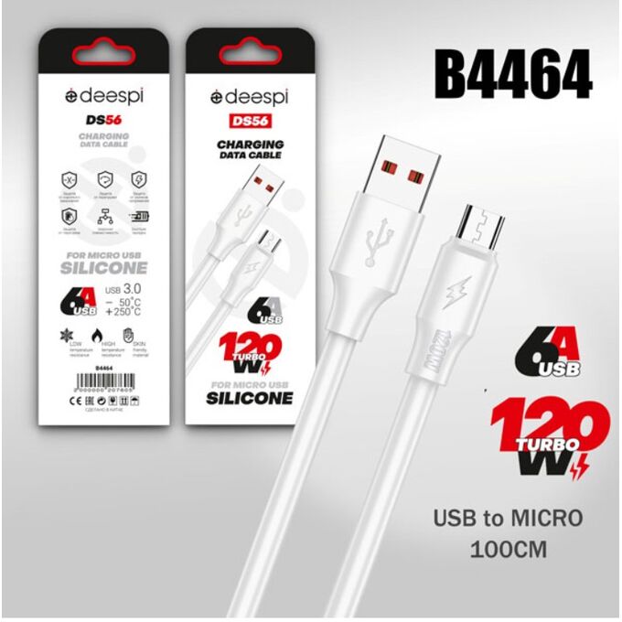 USB-кабель Deespi DS56 Micro 120W 1000mm White Silicone 10шт в упаковке