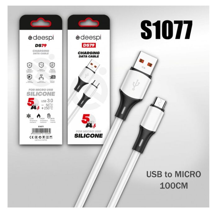 USB-кабель Deespi DS79 Micro 5А силиконовый 1000mm White 10шт в уп