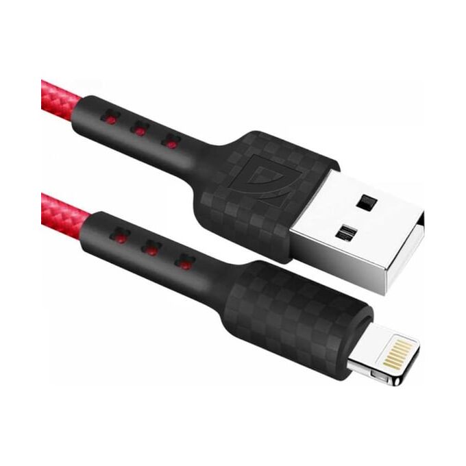 USB кабель DEFENDER F181 Lightning, red, 1м, 2.4А, 87114RED