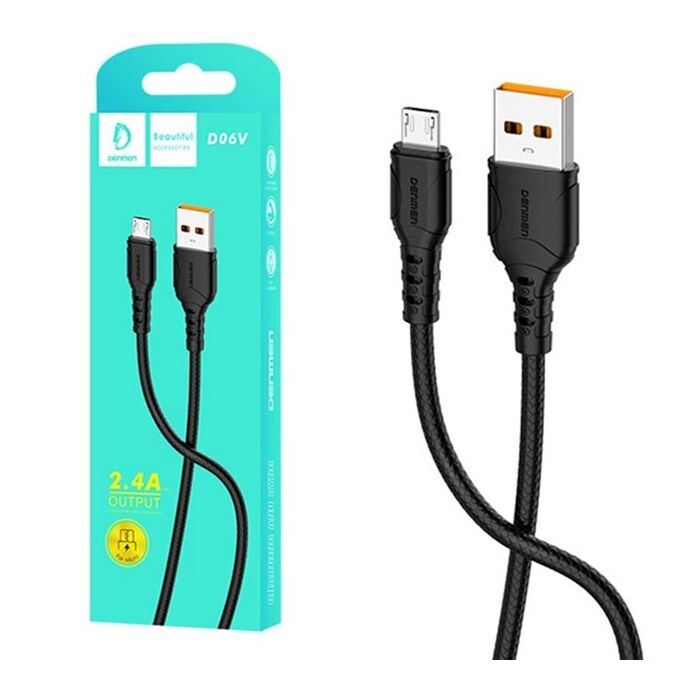 USB-кабель Denmen D06V, micro USB, пластик, 1.0 м, круглый, белый, фирменная упаковка