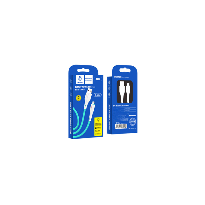 USB-кабель Denmen D16L, Apple 8 pin, силикон, 1.0 м, круглый, желтый, фирменная упаковка