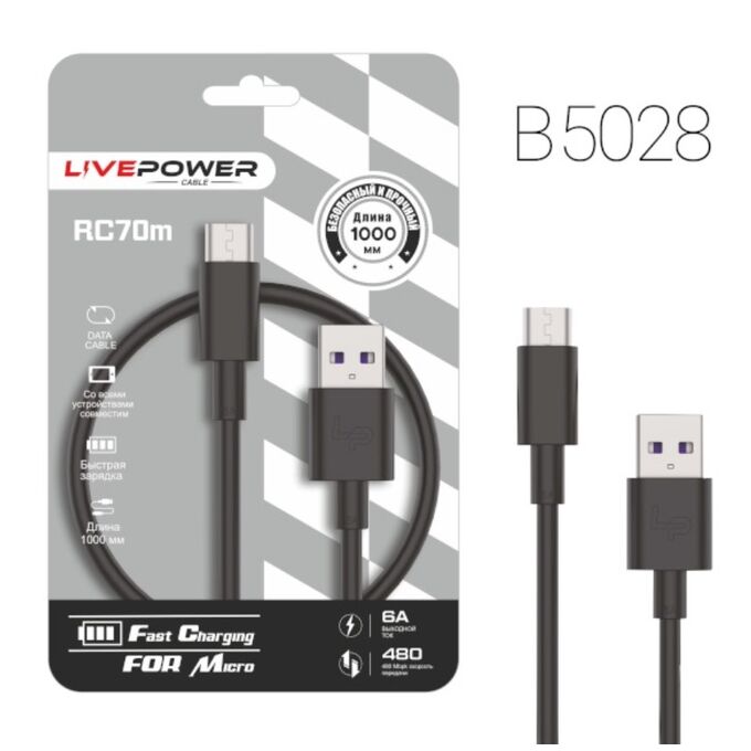 USB-кабель Live-Power RC70 Micro 6A 1000mm Black 20шт в упаковке