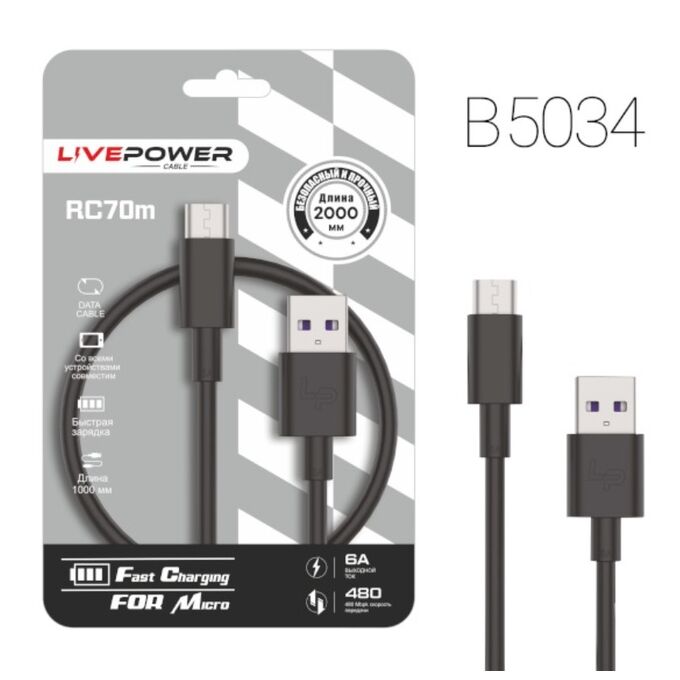 USB-кабель Live-Power RC70 Micro 6A 2000mm Black 10шт в упаковке